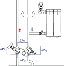 Основное назначение регуляторов – совместная работа с балансировочными клапанами VT.054 в двухтрубных системах отопления. При этом балансировочным клапаном VT.054 устанавливается расчетное значение увязочного перепада давления в обслуживаемом контуре (ΔРу), а регулятором перепада давлений поддерживается расчетный перепад давления по этому участку (ΔPн). В случае, когда применение балансировочного клапана не требуется, импульсную трубку рекомендуется подключать к шаровому крану с дренажом и воздухоотводчиком VT.245, имеющему патрубки с внутренней резьбой 1/4” (см. примеры применения).